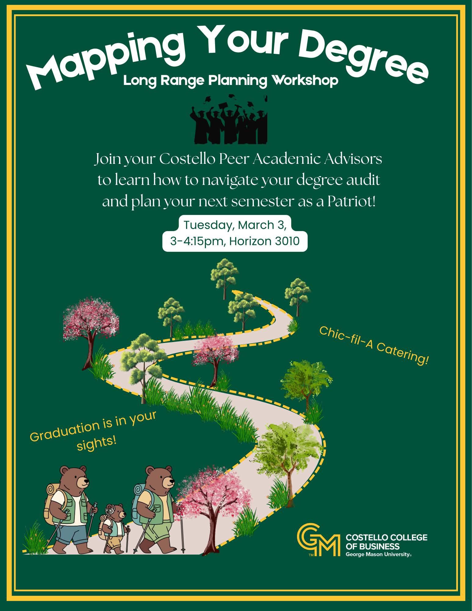 Join your Costello Peer Academic Advisors for a chance to learn how to navigate your degree audit and plan your next semester as a Patriot! Chic-fil-A will be provided!