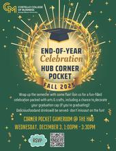 Midterm Celebration on Wednesday, October 22 from 1:00 PM to 3:30 PM at the Corner Pocket! Relax, recharge, or have fun: We’ve got you covered with a variety of exciting activities to help you unwind along with free Chick-fil-a nuggets while supplies last!